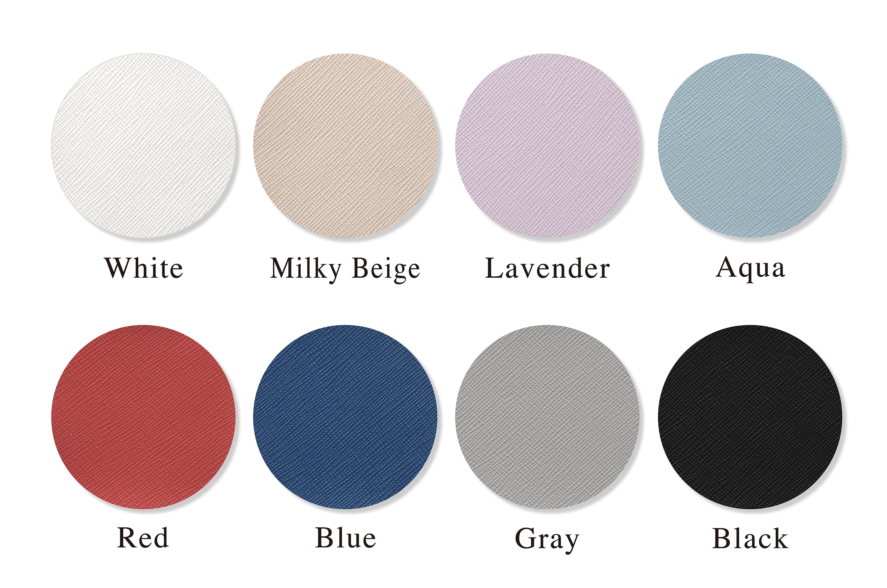 カラーはスムースに7色、エンボスに8色をラインナップ。全15カラーの中からイメージに合う素材をお選びいただけます。